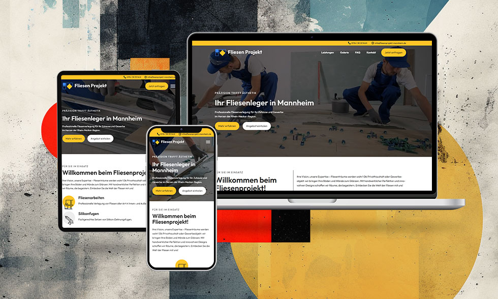 The company Fliesenprojekt Mannheim specializes in professional tiling and related services. The aim was to underline the company's expertise through a clear and structured online presence, to optimize the customer approach and to build trust.